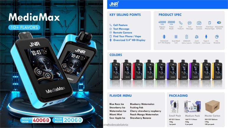 JNR MediaMax 40k pufs 46P2019 maiami piparmētra vienreizējās lietošanas vape